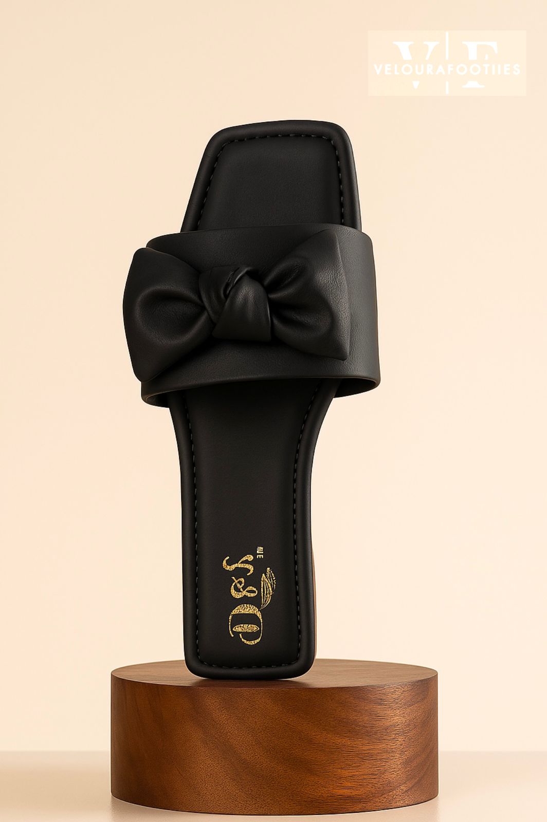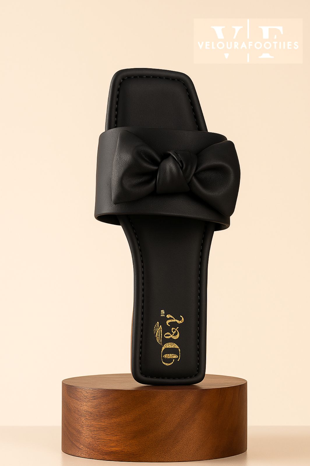 Add a touch of elegance to your everyday style with these chic black bow knot slide sandals. Featuring a sleek wide strap with a stylish knotted bow, these sandals are the perfect blend of sophistication and comfort. The cushioned footbed ensures effortless wear throughout the day, while the slip-on design makes them easy and versatile for any occasion.